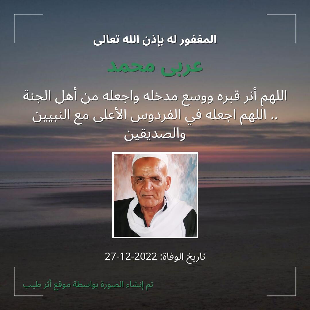بمشاركتك هذه الصفحة، تساهم في نشر الخير والدعاء للمرحوم عربى محمد.