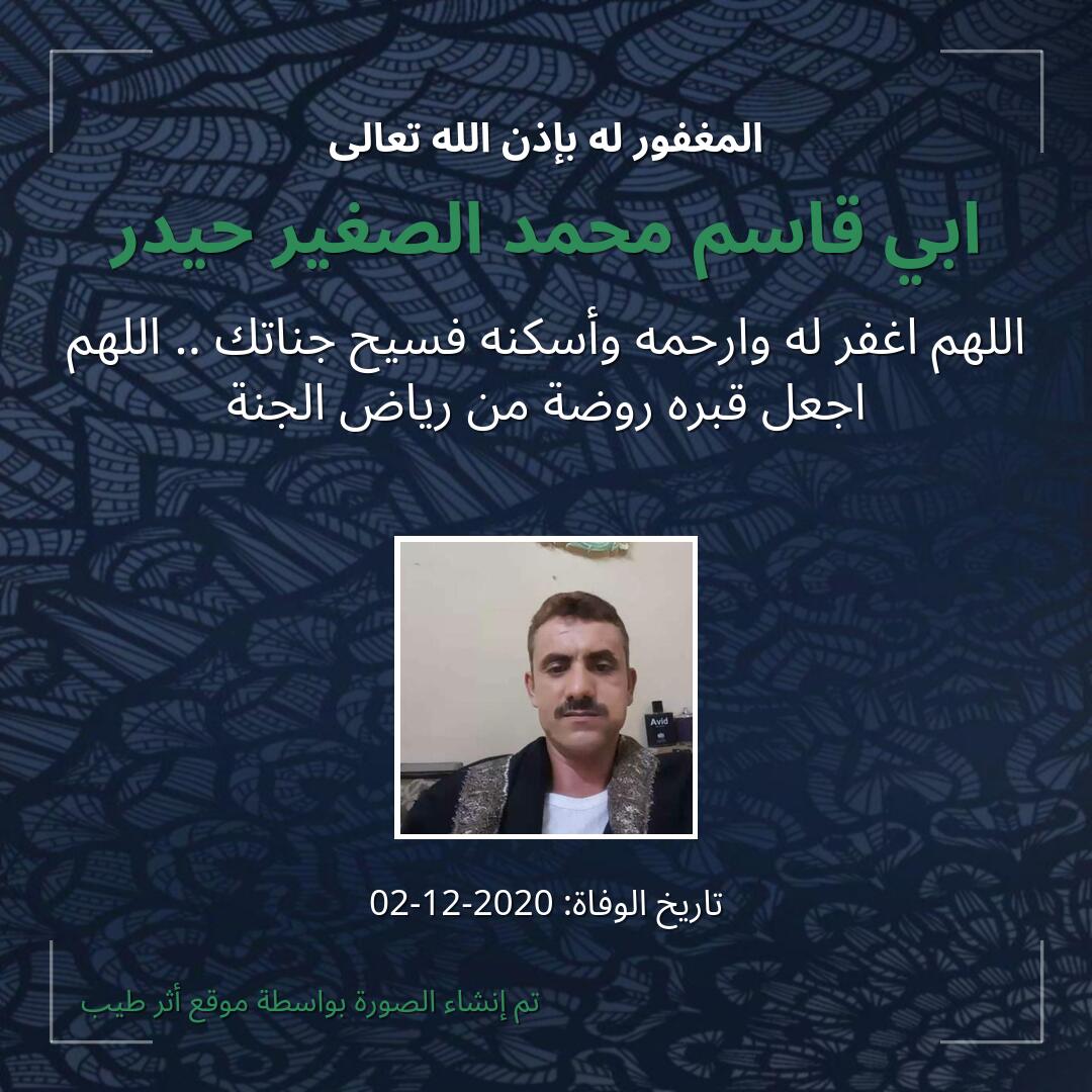 اللهم يا حنان يا منان يا واسع الغفران اغفر لـ ابي قاسم محمد الصغير حيدر وارحمه وعافه واعف عنه، وأكرم نزله ووسع مدخله، وأغسله بالماء والثلج والبرد، ونقه من الذنوب والخطايا كما ينقى الثوب الأبيض من الدنس.