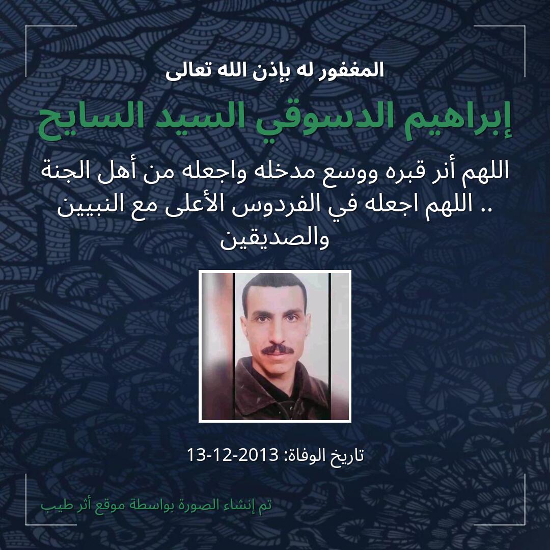 بمشاركتك هذه الصفحة، تساهم في نشر الخير والدعاء للمرحوم إبراهيم الدسوقي السيد السايح.