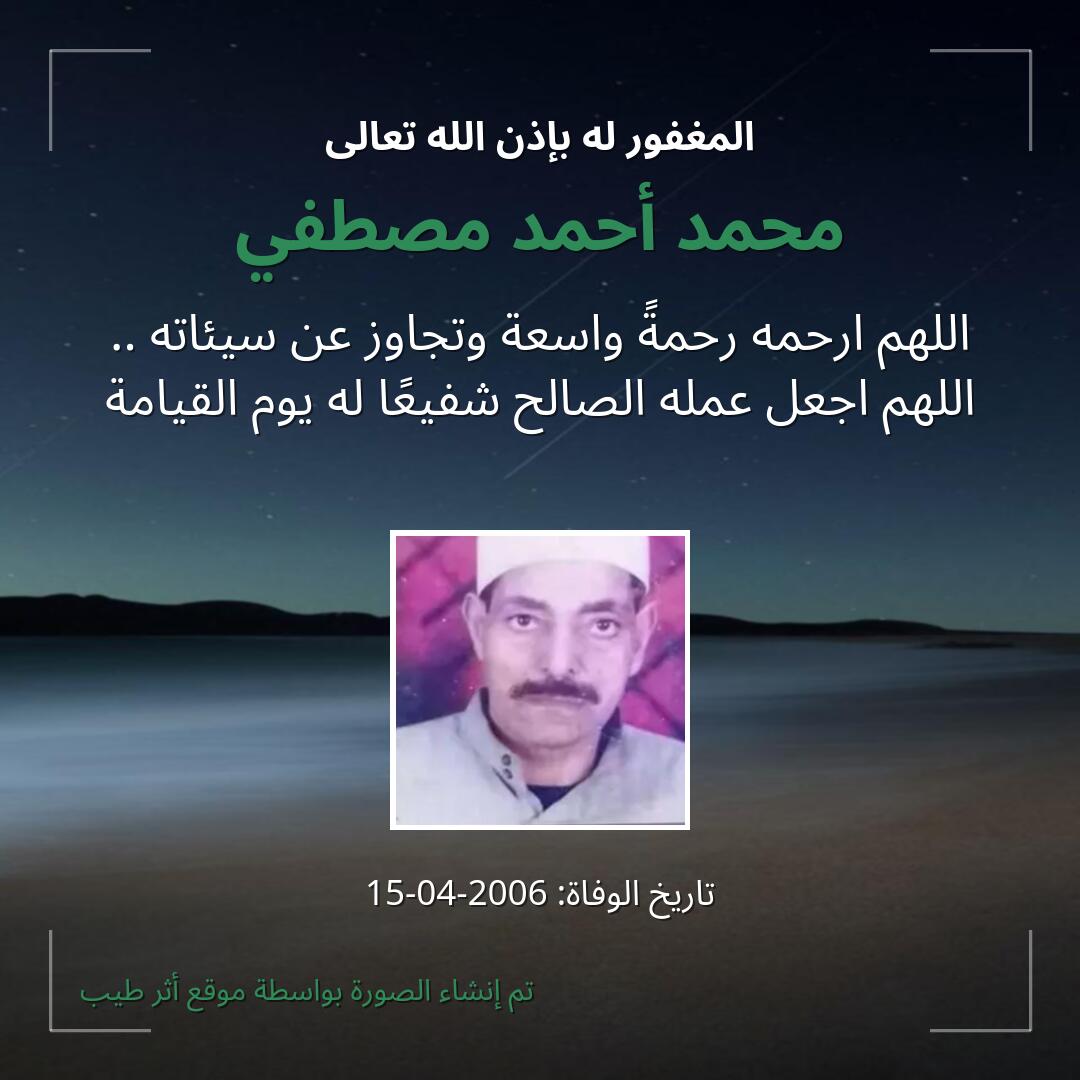 بمشاركتك هذه الصفحة، تساهم في نشر الخير والدعاء للمرحوم محمد أحمد مصطفي.