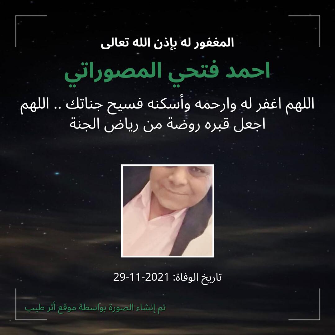بمشاركتك هذه الصفحة، تساهم في نشر الخير والدعاء للمرحوم احمد فتحي المصوراتي.
