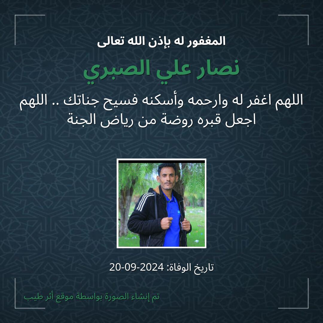 🌱 اللهم هب مثل ثواب هذا العمل إلى روح نصار علي الصبري 🌱