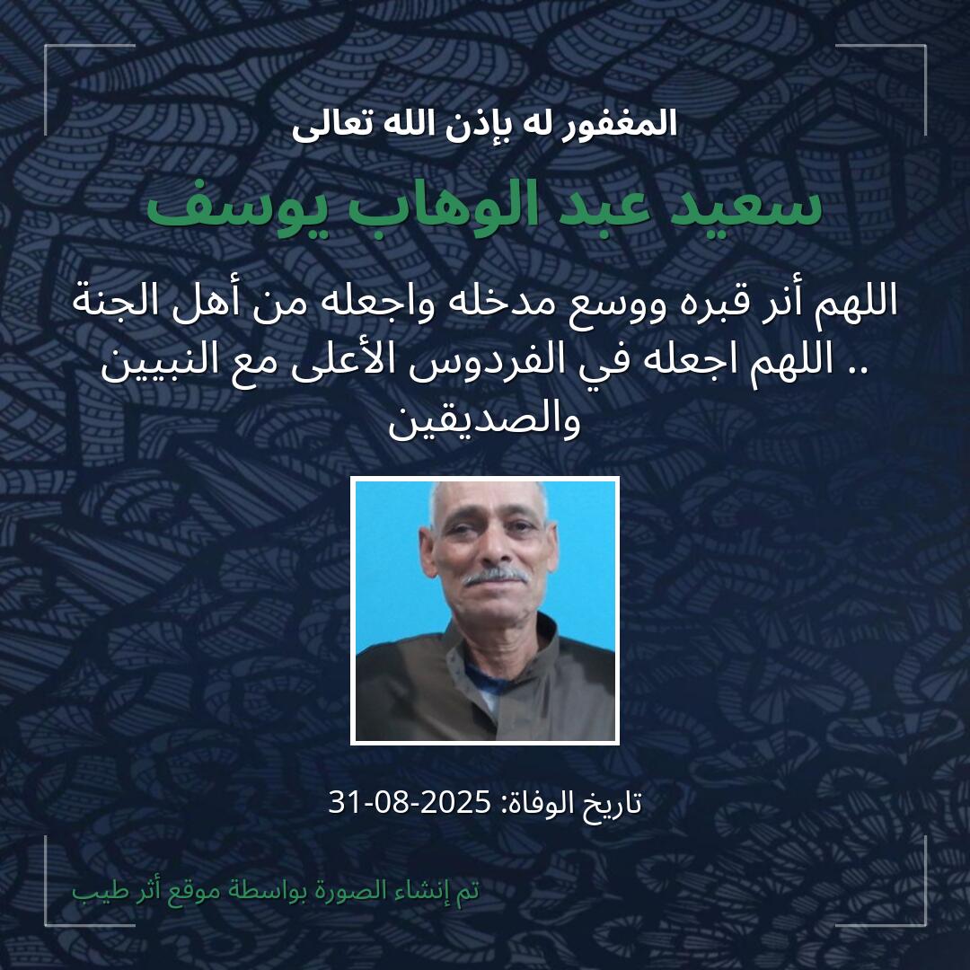 بمشاركتك هذه الصفحة، تساهم في نشر الخير والدعاء للمرحوم سعيد عبد الوهاب يوسف.