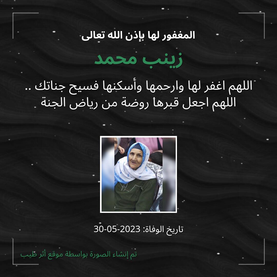 بمشاركتك هذه الصفحة، تساهم في نشر الخير والدعاء للمرحومة زينب محمد.