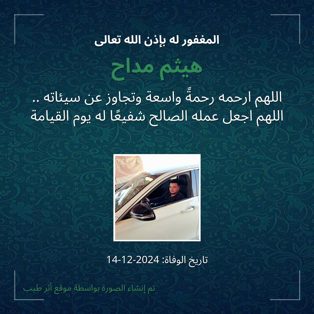 بمشاركتك هذه الصفحة، تساهم في نشر الخير والدعاء للمرحوم هيثم مداح.
