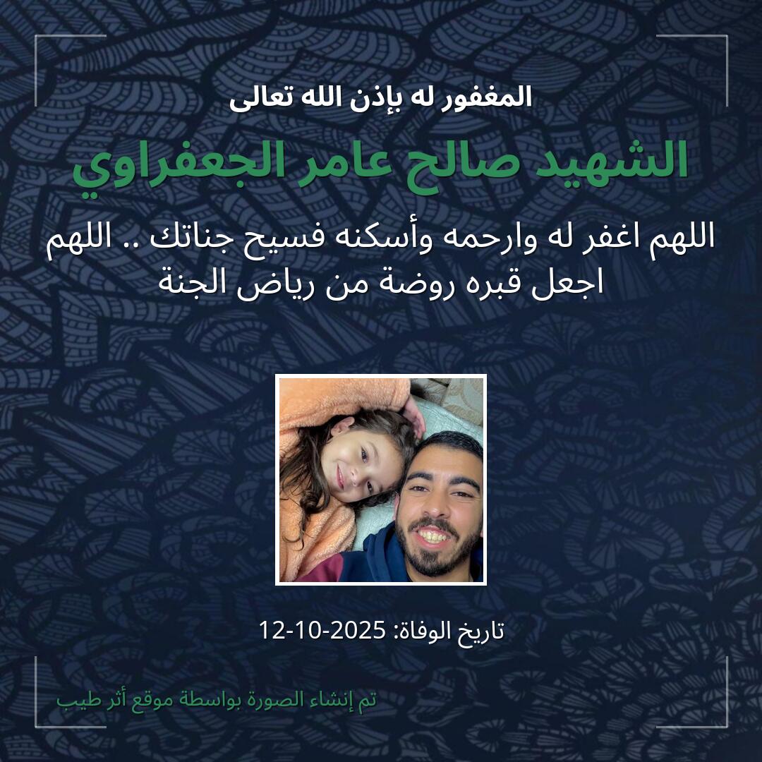 🌱 اللهم هب مثل ثواب هذا العمل إلى روح الشهيد صالح عامر الجعفراوي 🌱