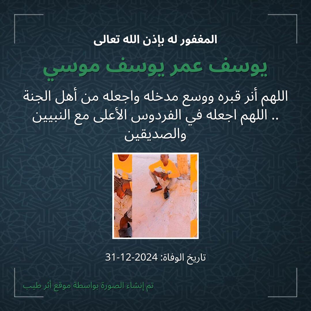 بمشاركتك هذه الصفحة، تساهم في نشر الخير والدعاء للمرحوم يوسف عمر يوسف موسي.