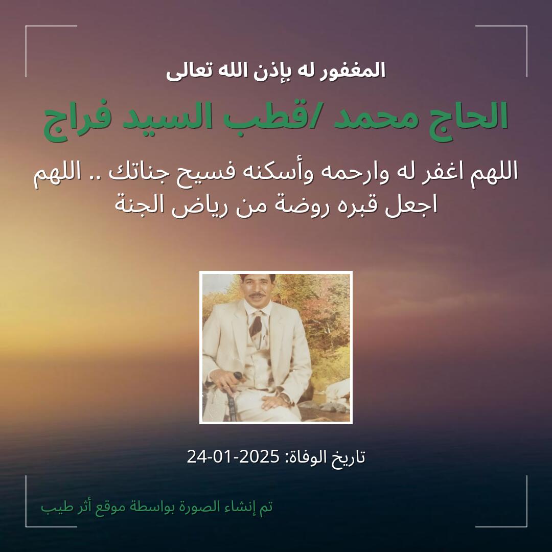 بمشاركتك هذه الصفحة، تساهم في نشر الخير والدعاء للمرحوم الحاج محمد /قطب السيد فراج.