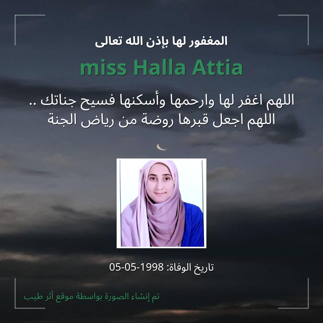 بمشاركتك هذه الصفحة، تساهم في نشر الخير والدعاء للمرحومة miss Halla Attia.