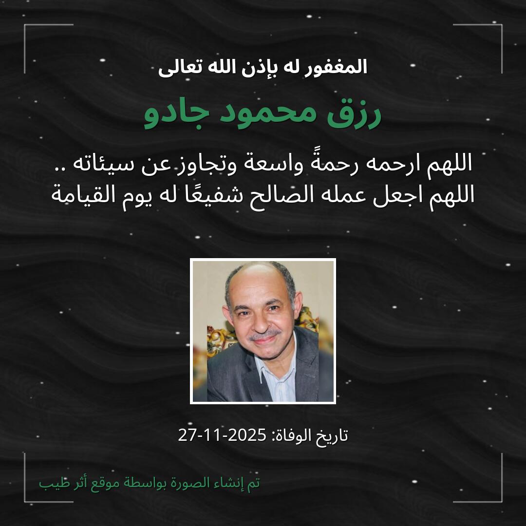 بمشاركتك هذه الصفحة، تساهم في نشر الخير والدعاء للمرحوم رزق محمود جادو.