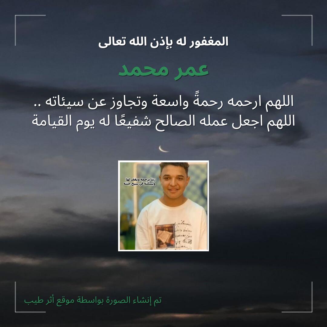 اللهمّ يمّن كتاب عمر محمد ويسّر حسابه، وثقّل بالحسنات ميزانه، وثبّت على الصّراط أقدامه، وأسكنه في أعلى الجنّات، بجوار حبيبك ومصطفاك صلّى الله عليه وسلّم.