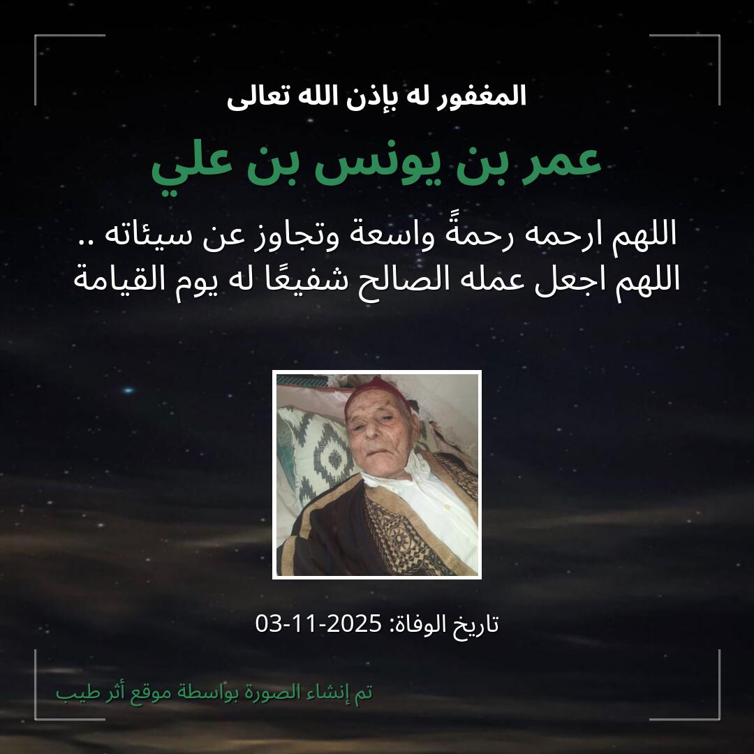 بمشاركتك هذه الصفحة، تساهم في نشر الخير والدعاء للمرحوم عمر بن يونس بن علي.